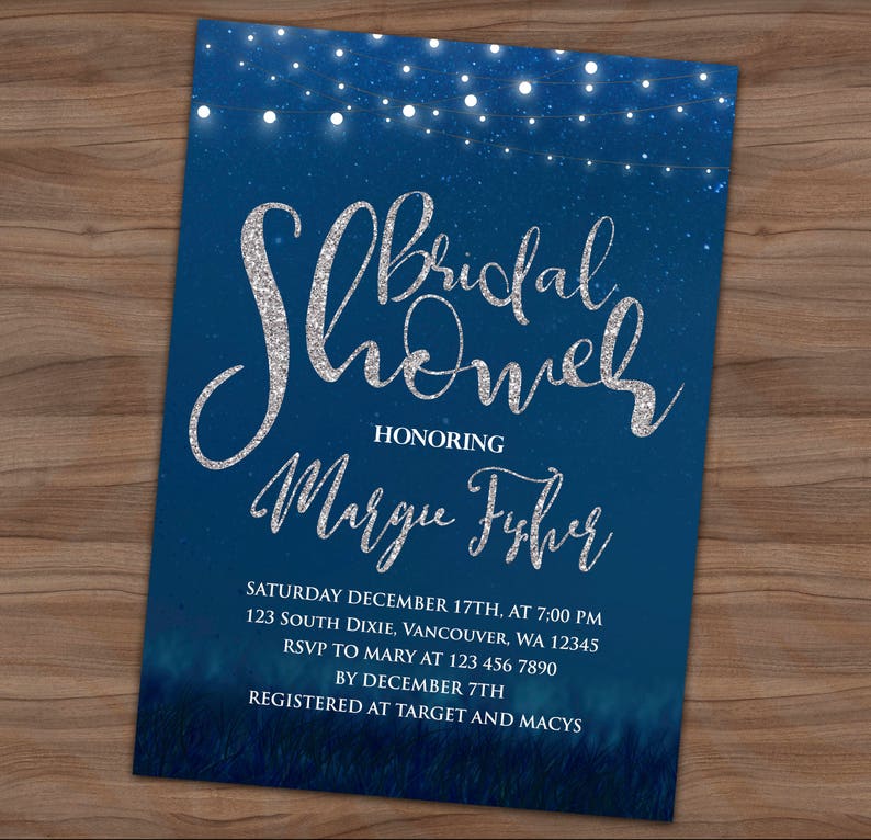 Starry Night Bridal Shower Invitation Winter Evening Invite Etsy