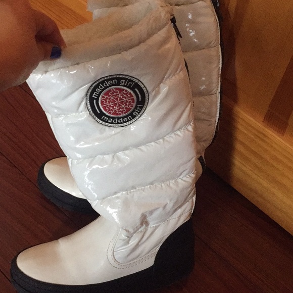 Madden Girl Shoes Madden Girl White Patent Leather Winter Boots Poshmark