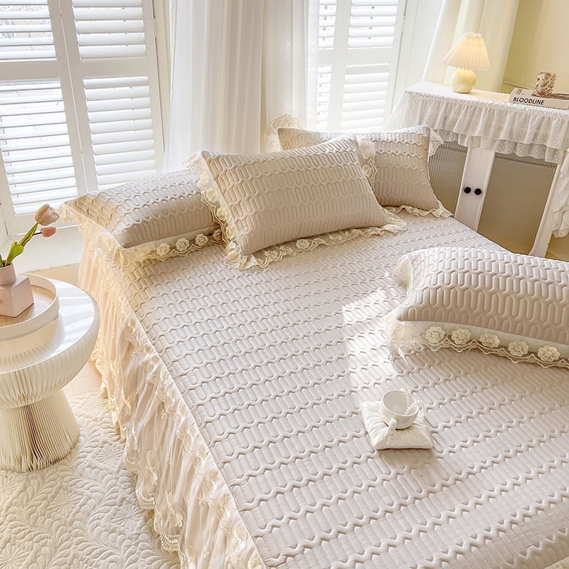 Homechoice 3Piece Prewashed King White Ruffle Skirt Bedspread Set with Simplicity Lace Ruffles White Dust Ruffles Bed Skirts Upgrade your queen bed with our white linen bedskirt dust ruffle, featuring an 9 drop and regular design with two pleats at the corner foot of the bed, left and right. A bed skirt, also known as a dust ruffle or valance, is a decorative piece of fabric placed between the mattress and box spring of a bed. Add a. White Dust Ruffles Bed Skirts.