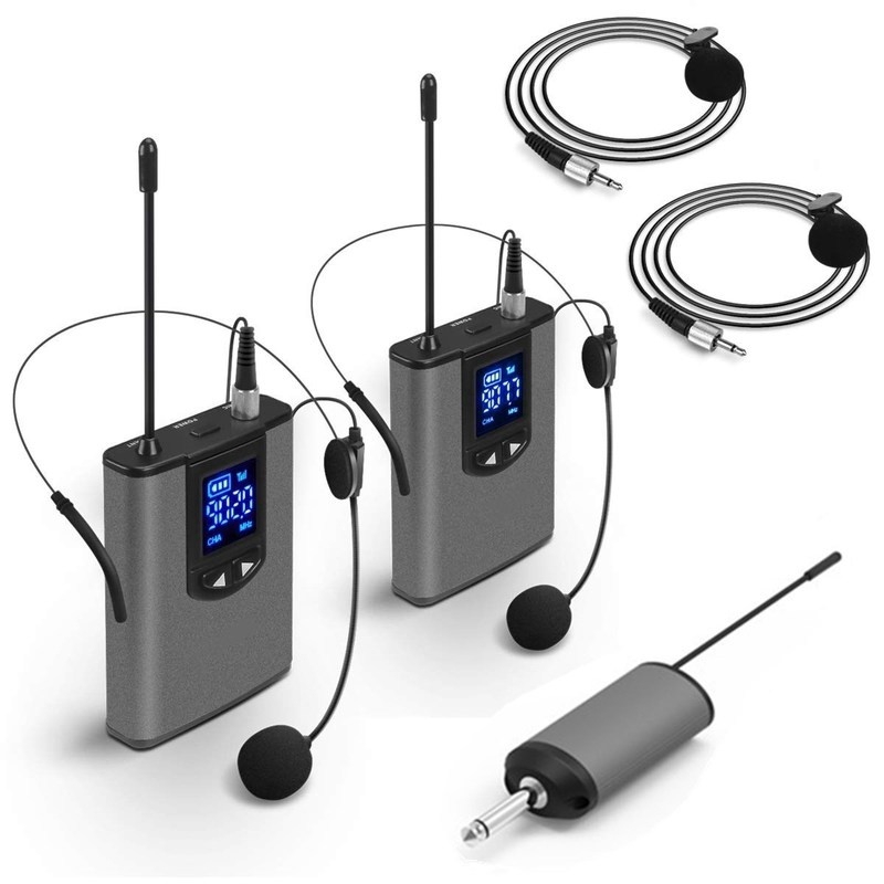 UHF Wireless System Dual Headset Microphones/Lavalier Lapel Mics and