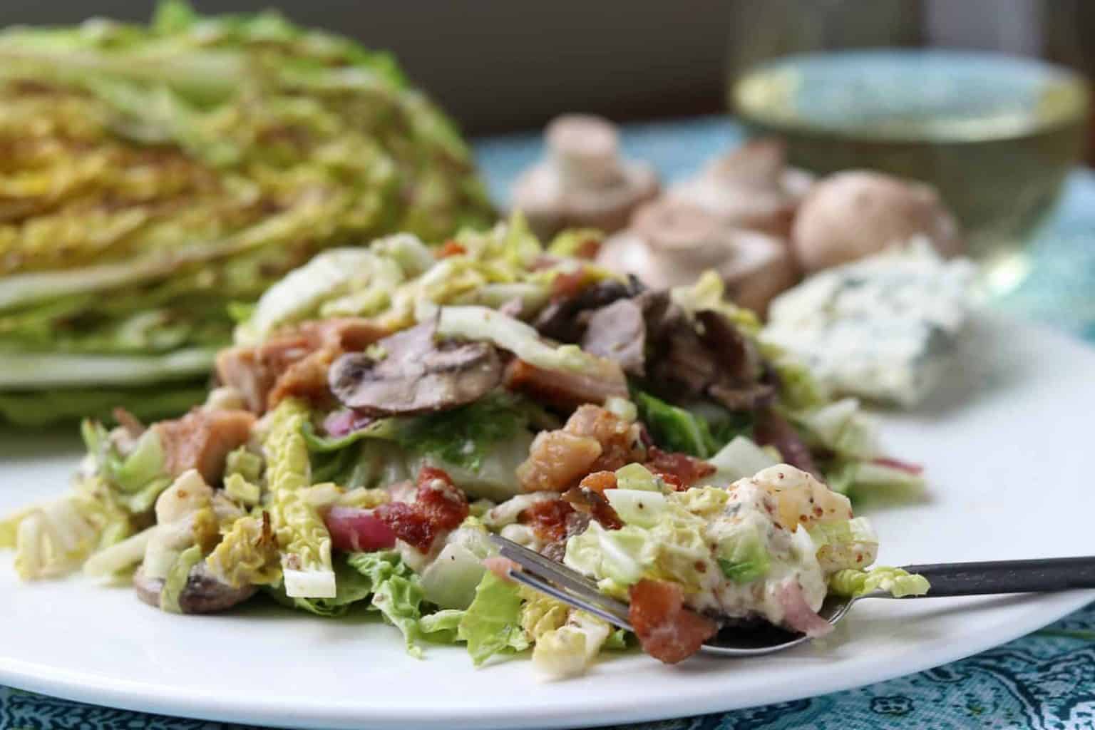 Grilled Napa Cabbage Salad with Chicken, Blue Cheese and Mushrooms