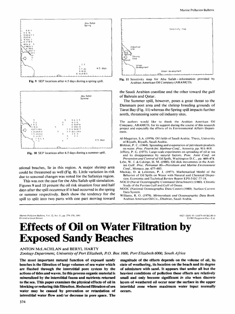 Effects of Oil On Water Filtration by Exposed Sandy Beaches PDF