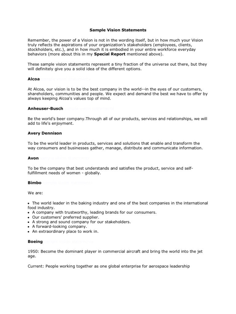Sample Vision Statements Sony Leadership