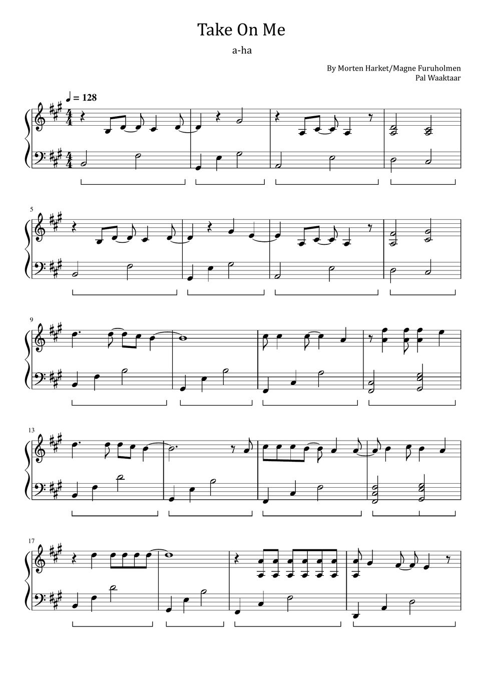 Take On Me sheet music for Piano download free in PDF or MIDI Partition Piano A Ha Take On Me Sheet music arranged for piano/vocal/guitar in a major (transposable). Sheet music arranged for easy piano in a major (transposable). Download, print, transpose, and more. Take on me for piano solo, easy piano sheet music. Partition Piano A Ha Take On Me.