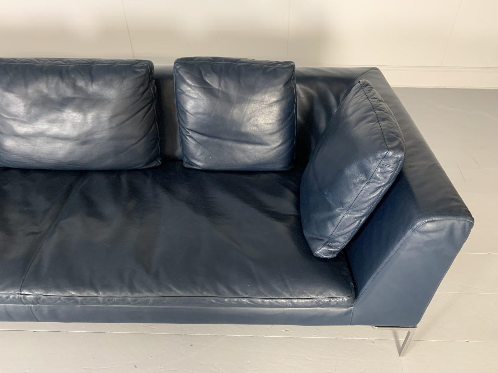 B&B Italia “Charles” LShape Sofa, in Navy Blue “Gamma” Leather For