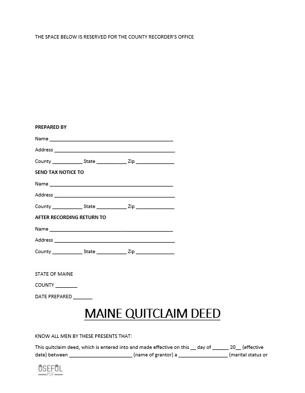 Free Maine Quitclaim Deed Form Template