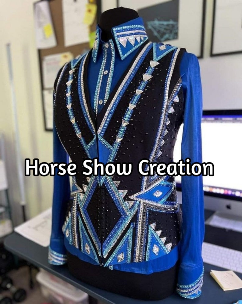 Black and Blue Western Pleasure Horse Show Vest Horsemanship Etsy Horse Show Vest These western show shirt, jacket, vest and pants combinations. With an impressive selection of both. Shop or sell with us! Show shirts and vests feature elegant embellishments on the sleeves. Check out our horse show vest selection for the very best in unique or custom, handmade pieces from our jackets & coats shops. Consignment horse show clothing at reasonable prices.. Horse Show Vest.