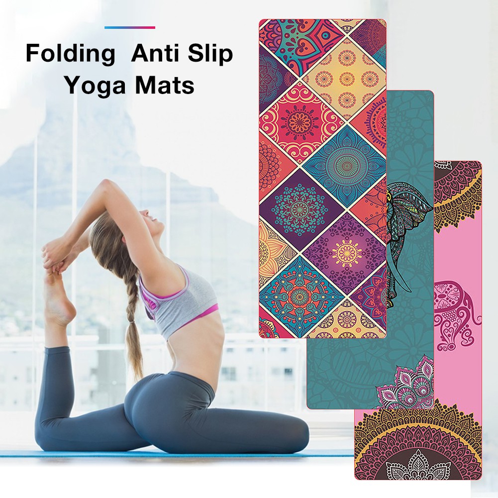 CNE Folding Yoga Mats Printed Natural Rubber Anti Slip Blankets for