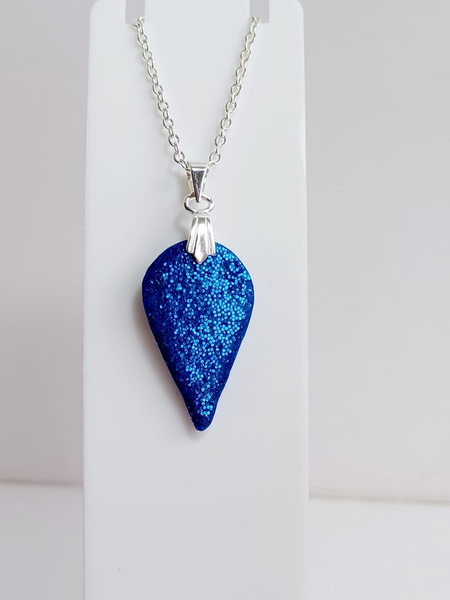 Royal blue sparkle teardrop pendant Folksy