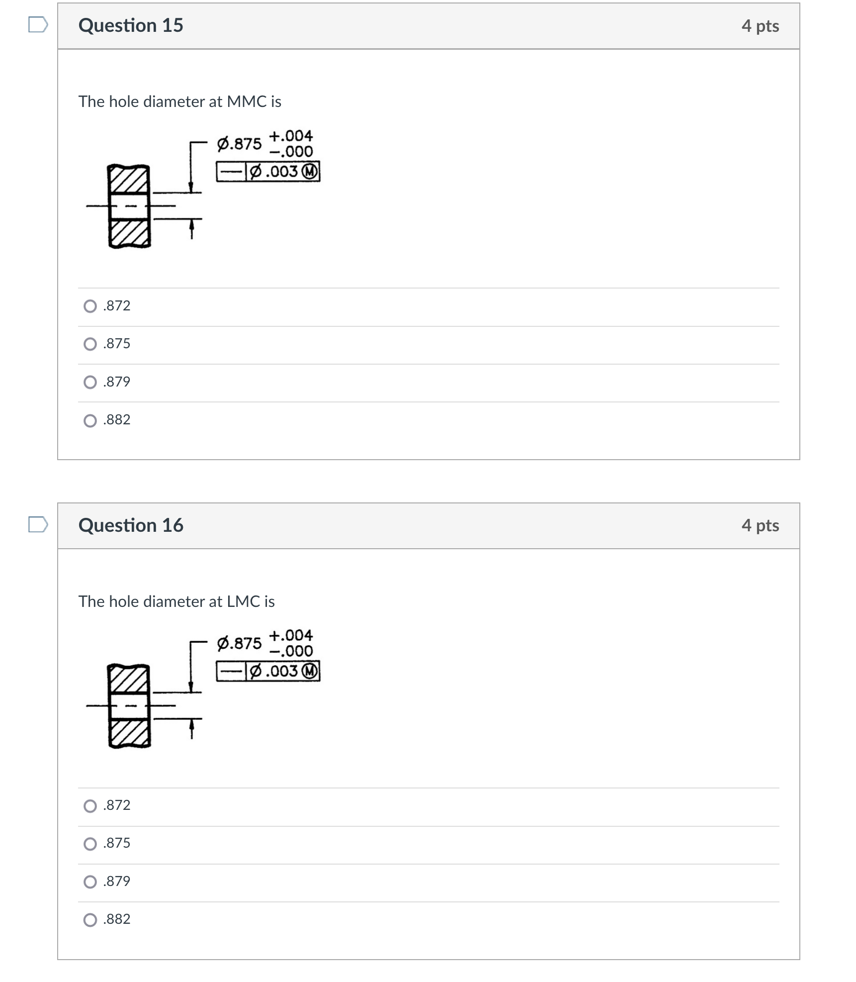 Solved The hole diameter at MMC is .872 .875 .879 .882