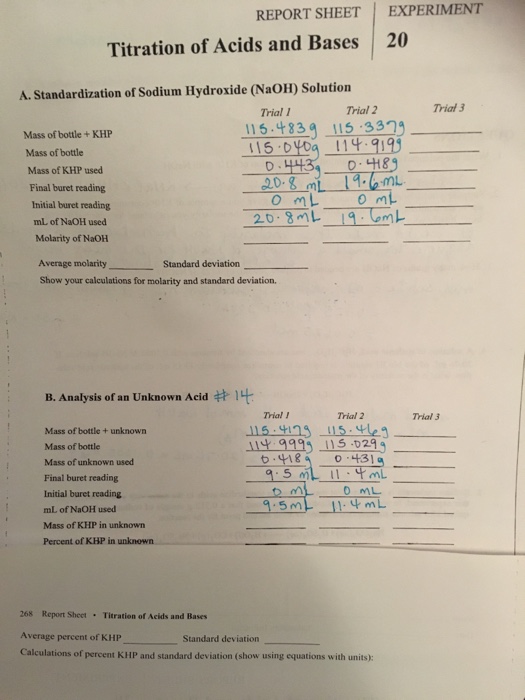 Titration Of Acids And Bases Lab Report Experiment 20 Answers 45+ Pages