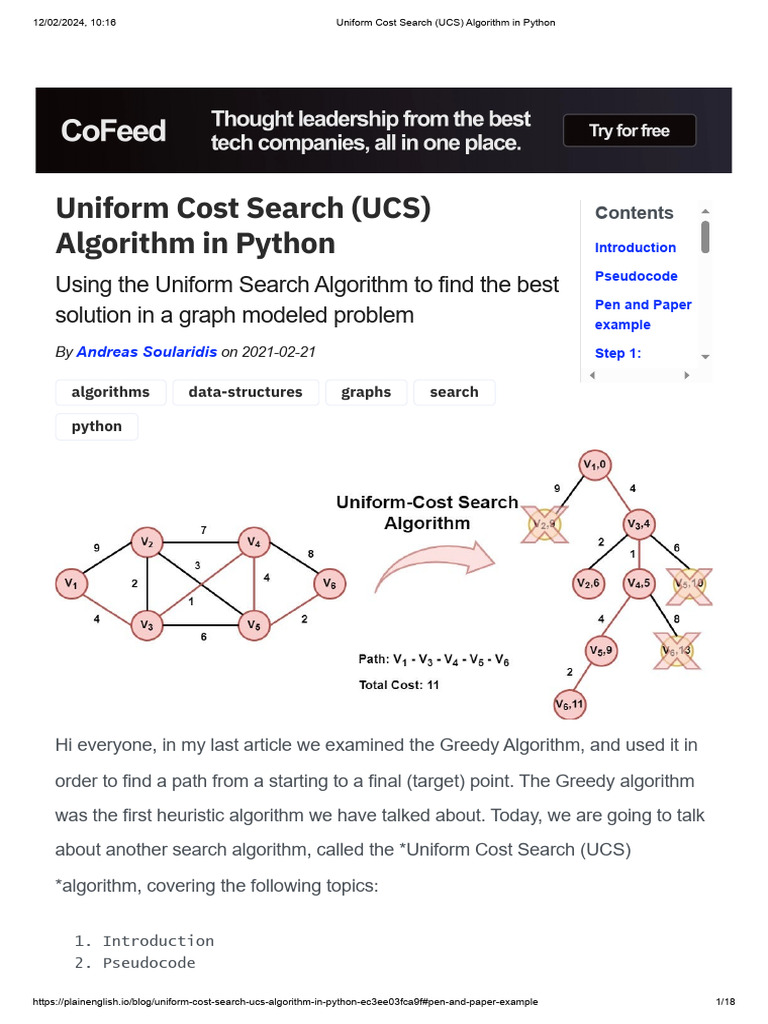 Uniform Cost Search (UCS) Algorithm in Python PDF Computing