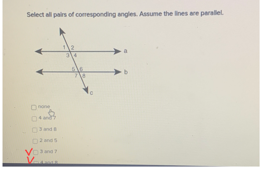 Select all pairs of corresponding angles. Assume t... CameraMath