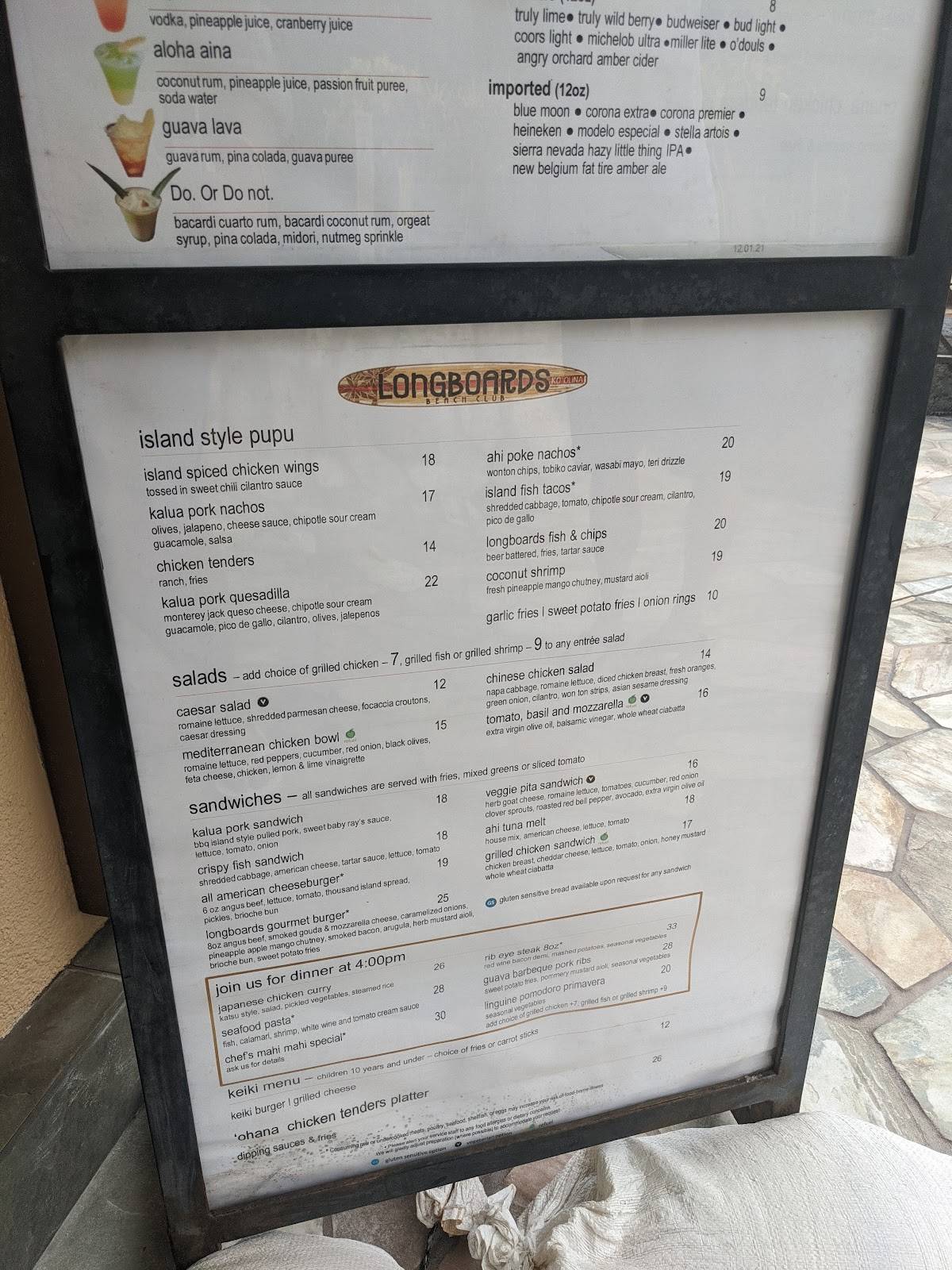 Menu at Longboards pub & bar, Kapolei