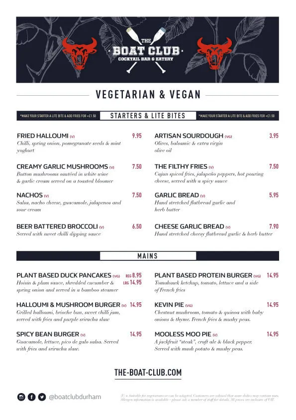 View Menus The Boat Club, Durham Cocktail Bar & Restaurant