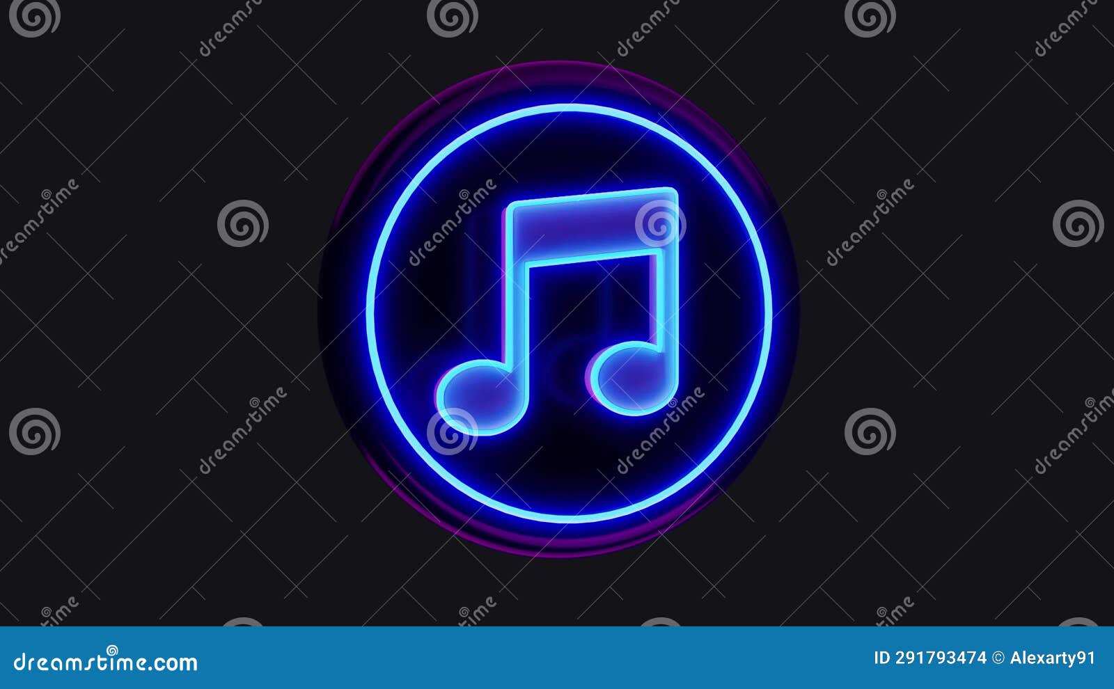 Pulsating Blue Neon Icon with Note 3d Render Animation Stock Footage