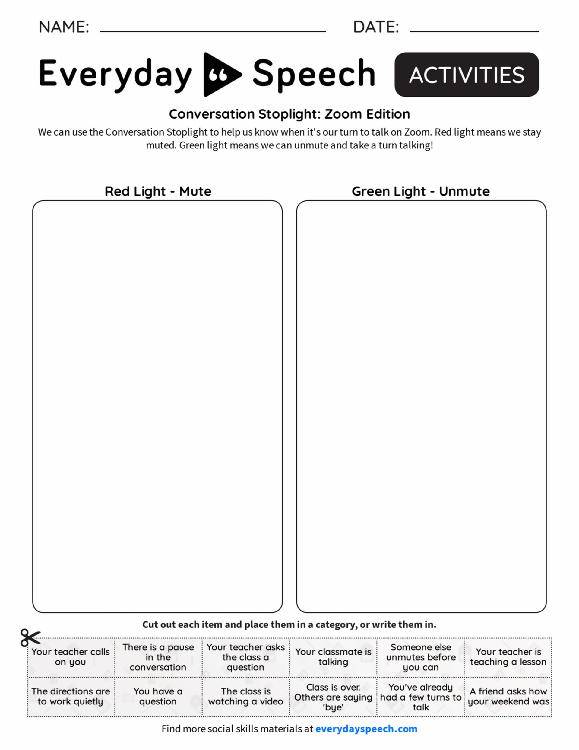 Lesson Plan Conversation Stoplight Everyday Speech