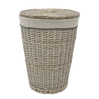 JVL Arianna Round Willow Laundry Basket Antique Wash Home