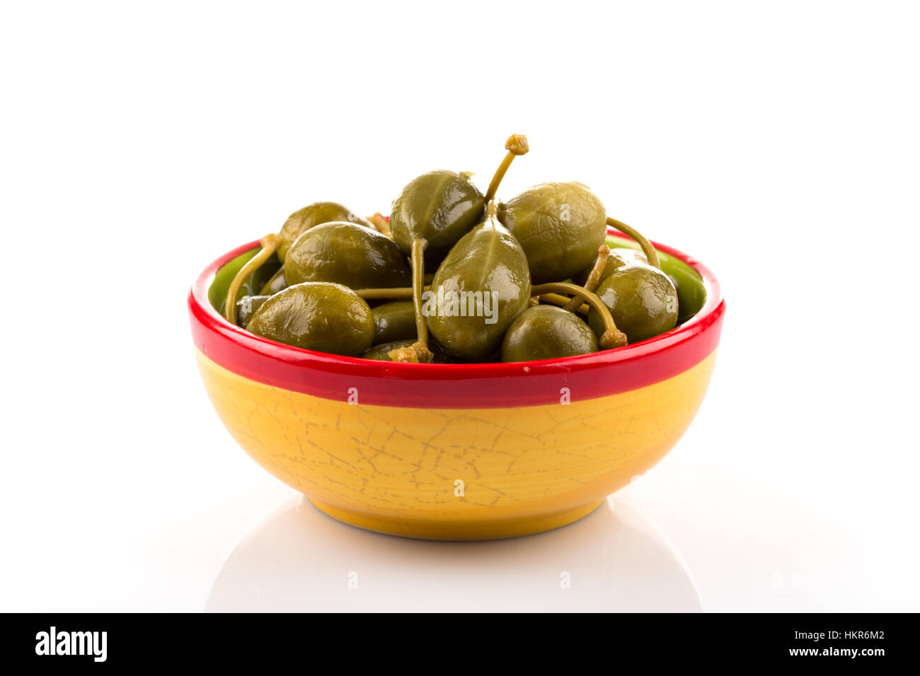 Bowl of canned capers on a white background Stock Photo Alamy