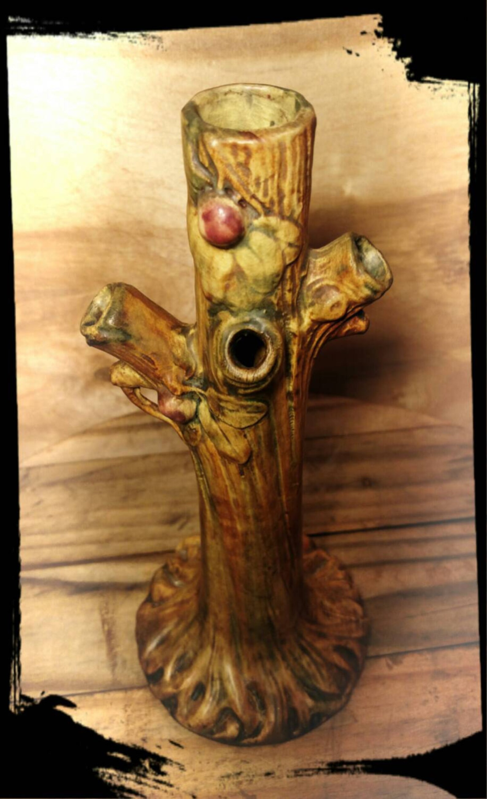Antique Weller Woodcraft Art Ware Tree Trunk Vase Signed by B