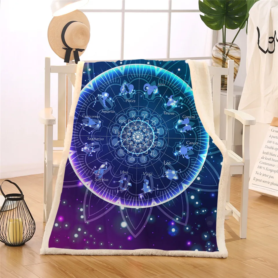 BlessLiving Zodiac Blanket Lotus Mandala Sherpa Fleece Blanket Bling