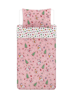 Pink Christmas Festive Unicorn Single Duvet Set Home at ASDA