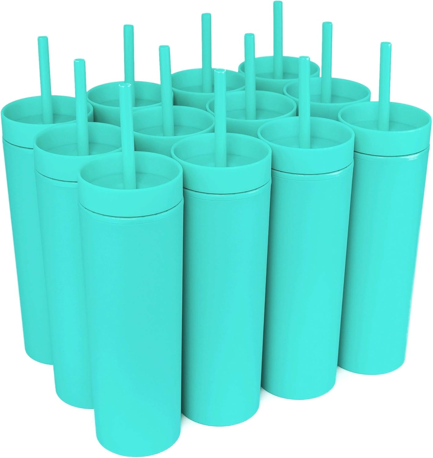 STRATA CUPS Aqua Skinny Tumblers with Lids and Straws (12