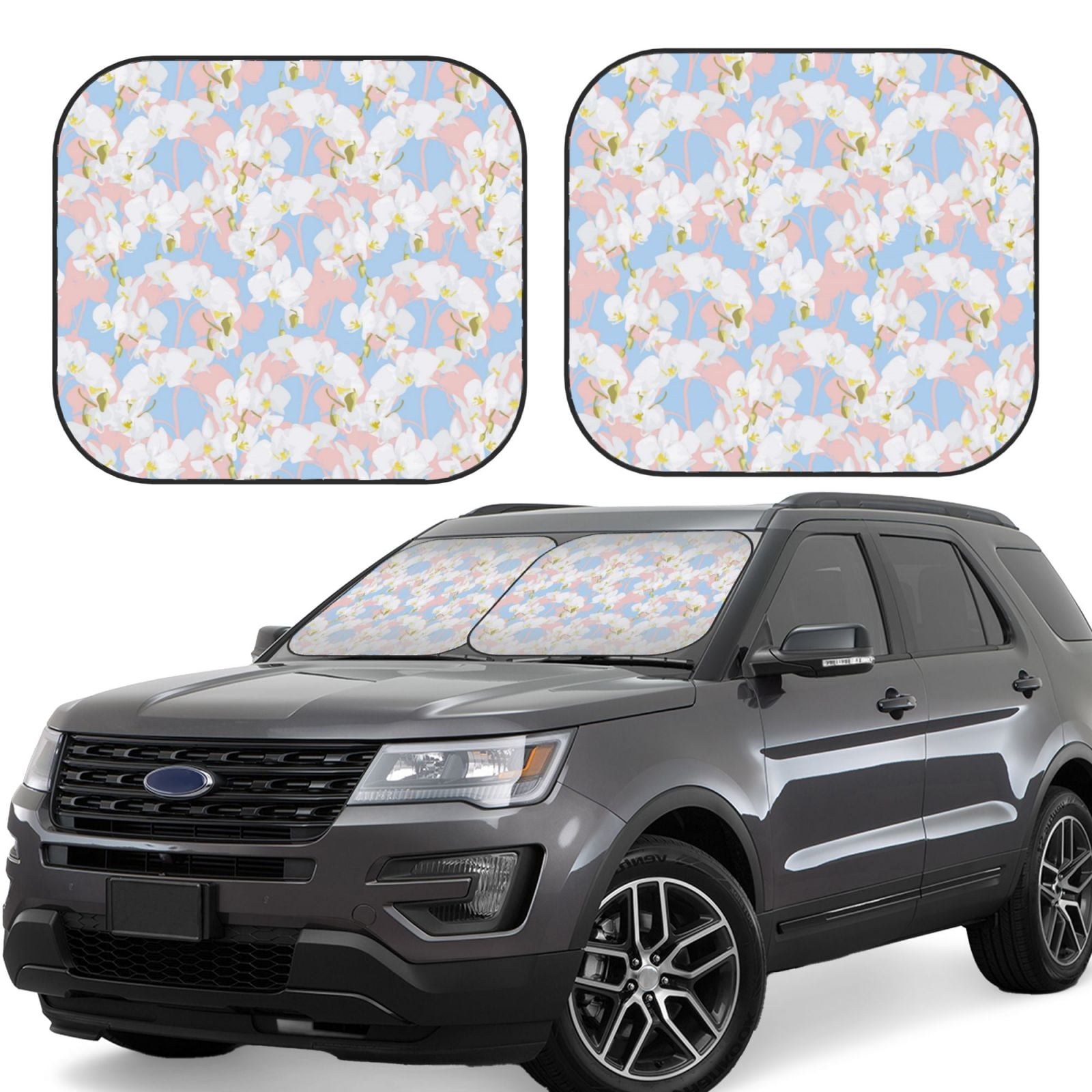 Car Windshield Sun Shade Foldable Sun Shade for Car Windshield, Pink White Orchids Flowers Sun