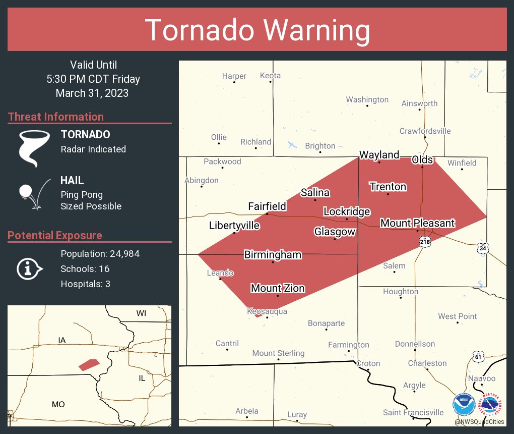 NWS Quad Cities on Twitter "Tornado Warning including Fairfield IA
