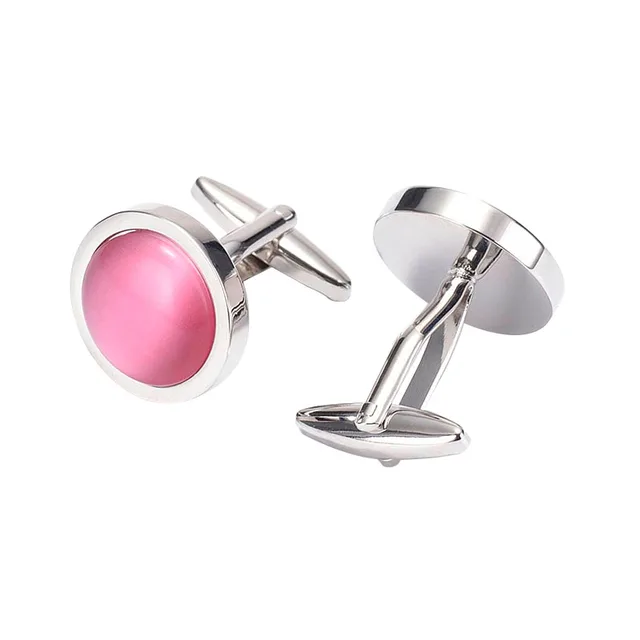 KBAP Men's Elegant Cufflinks Pink Opal Round Cuff Links Tuxedo Shirt