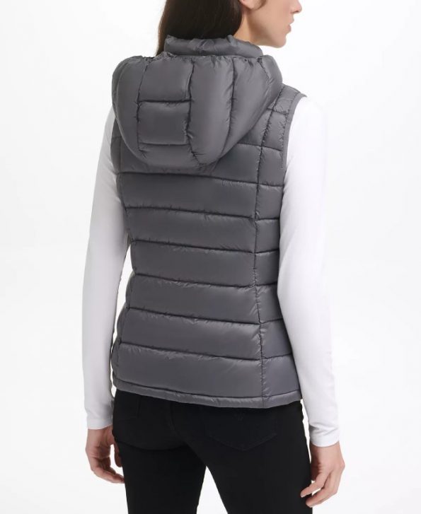 Women’s Packable Hooded Grey Puffer Vest The Puffer Jackets