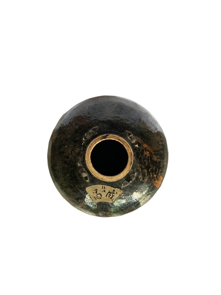 Antique Chinese Brown / Black Glazed Pickling Jar, c. 1900 For Sale at