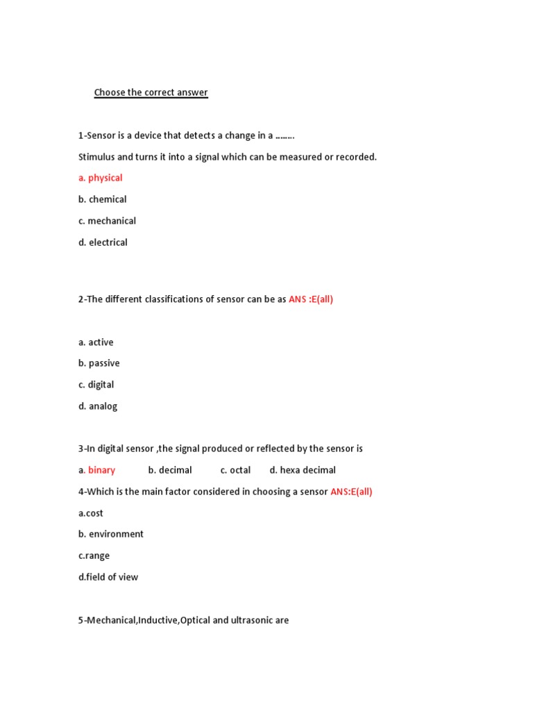 Sample Exam Question On Sensors PDF Sensors Questions sensors and transducers questions. This list of 100 sensor questions aims to test your knowledge and understanding of sensors and transducers, their. explore the realm of sensors and transducers with our extensive collection of objective questions and answers. solved mcqs for sensors and transducers, with pdf download and free mock test. Covering a wide range of topics,. Sensors Questions.
