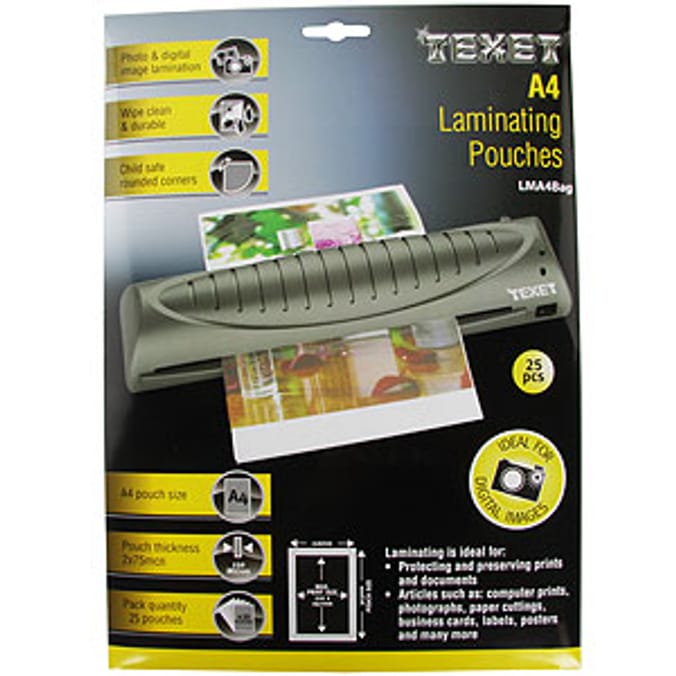 Texet A4 Laminating 25 Pouches Home Bargains
