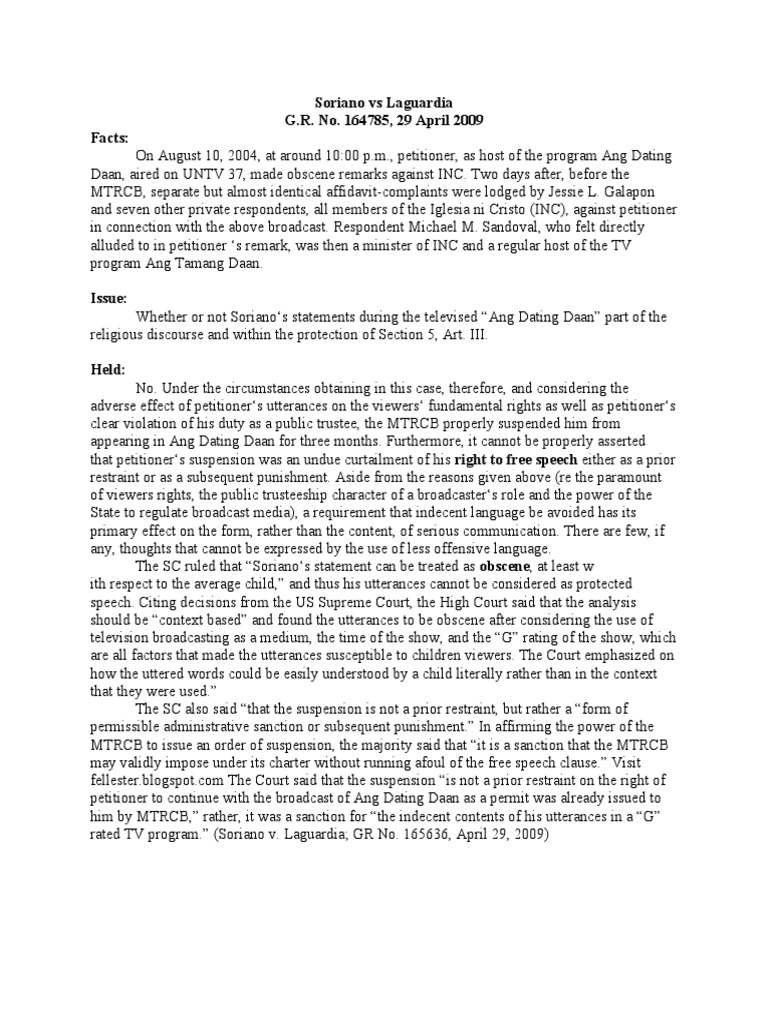 Soriano Vs Laguardia G.R. No. 164785, 29 April 2009 Facts Download Free PDF Obscenity