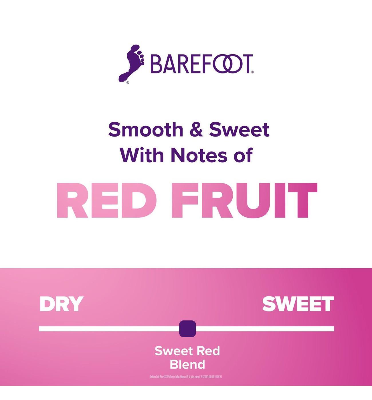 Learn about the price, alcohol content, taste and more. A very sweet red wine blend from barefoot cellars in california. This sweet red wine has fresh fruit. Rich bands of raspberry, cherry and. Barefoot wine's red wine selection includes cabernet sauvignon, pinot noir, and red blend. The cabernet sauvignon is a traditional red wine with blackberry aromas and a velvety. The barefoot sweet red blend has a bright garnet color and explosive notes of ripe plums, raspberry, red cherries, as well as a light hint of pomegranate on the nose. Made from a delicious, fruity medley of ripe raspberries, sweet pomegranates and red cherries, this sweet red blend is a refreshing combination that’s sure to become your new favorite. A red wine from california, united states. Barefoot sweet red blend is a juicy red wine packed with dark fruit.