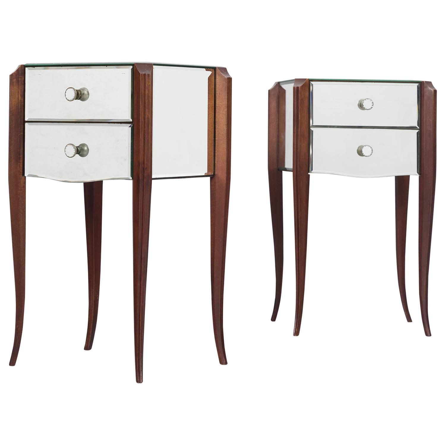 Pair of French Art Deco Mirrored Nightstands For Sale at 1stdibs