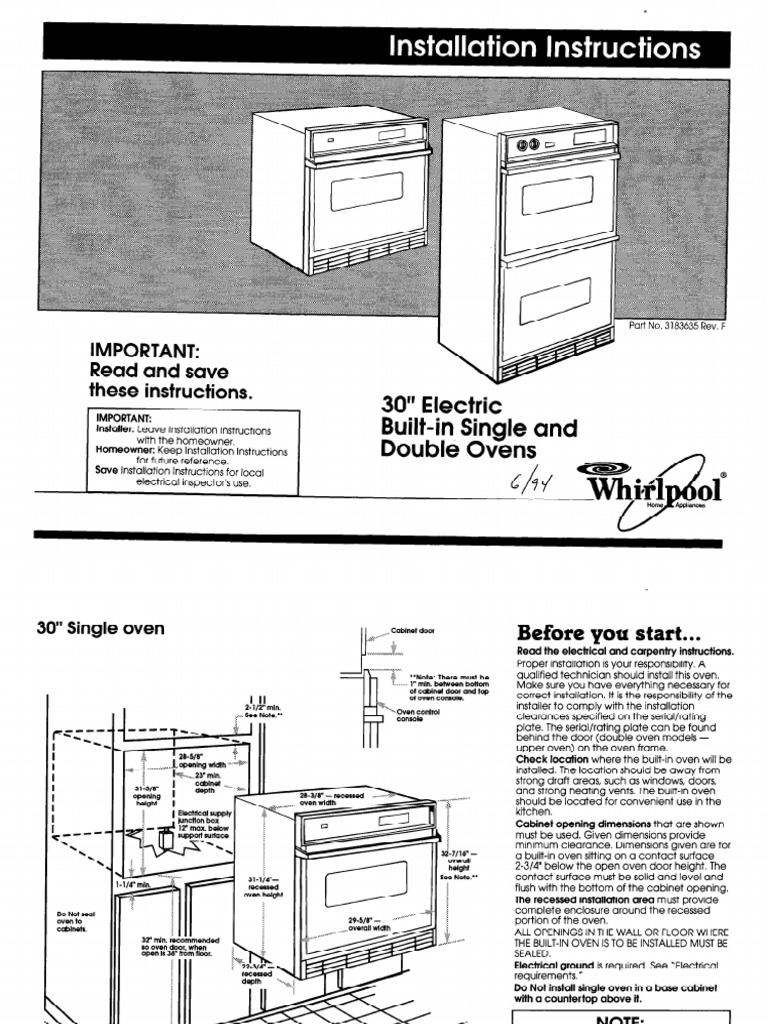 30" Electric BuiltIn Single and Double Ovens Important Read and Save