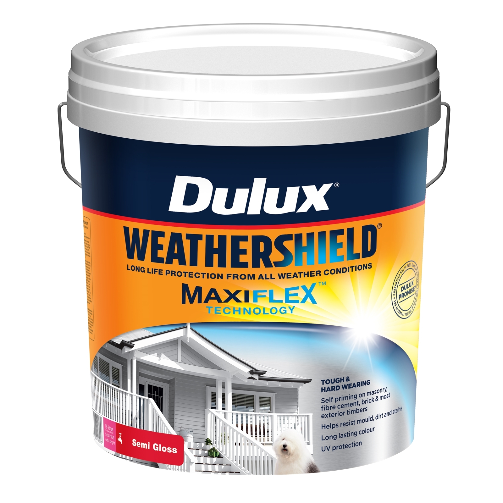 Dulux 15L Exterior Paint Weathershield Semi Gloss Extra Bright