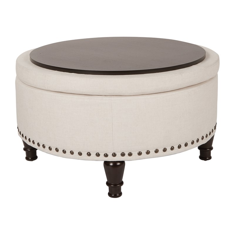 OSP Home Furnishings Augusta Round Storage Ottoman in Linen Cream