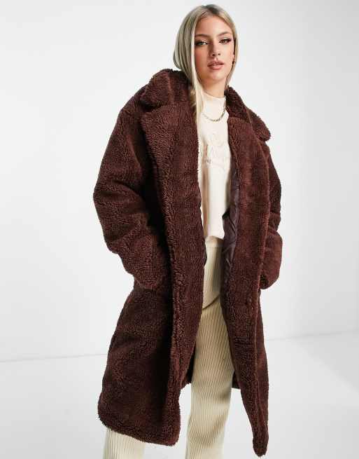 Abrigo largo marrón chocolate extragrande de borreguito de Threadbare