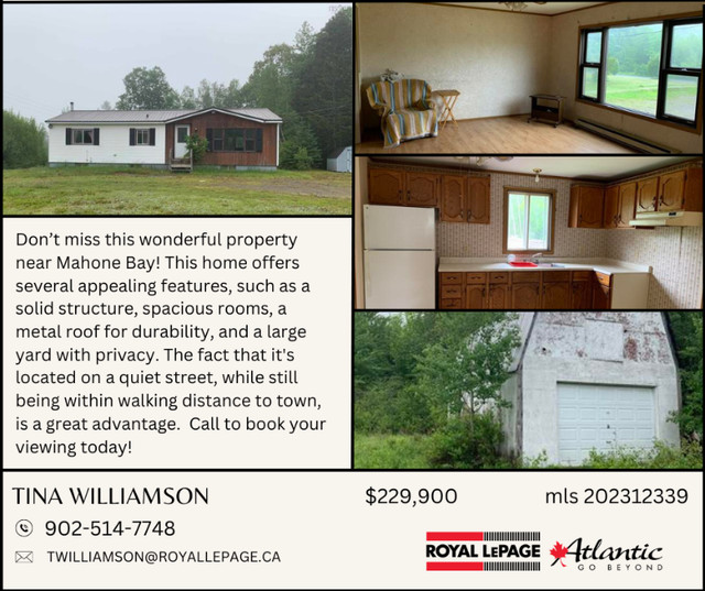3bdrm 1 bath Home on Acreage Mahone Bay Houses for Sale