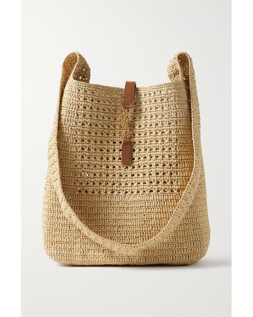 Saint Laurent Leathertrimmed Raffia Shoulder Bag Lyst