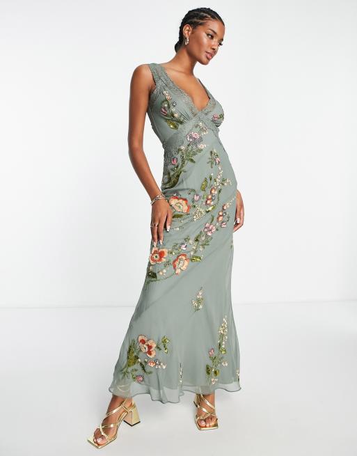ASOS DESIGN lace trimmed maxi dress with floral embellishment ASOS