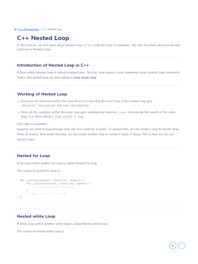 13.How to write a program for Nested loop in C++ What is nested loop What Is A Nested Loop C++ That is why nested loops are also called as “loop inside loop“. A loop can be nested inside of another loop. Nested loops are programming structures where one or more loops are placed inside another loop. A loop inside another loop is called a nested loop. C++ allows at least 256 levels of nesting. In this tutorial, we will learn. What Is A Nested Loop C++.