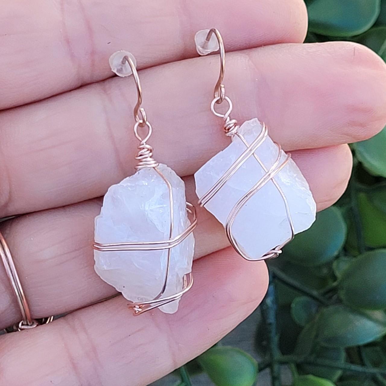 Crystal Quartz Earrings Rose quartz earrings, raw natural rough rose quartz crystals, pink quartz earrings, large chunky earrings, pure copper wire wrapped earrings Check out our crystal quartz earrings selection for the very best in unique or custom, handmade pieces from our dangle & drop earrings shops. 1m+ visitors in the past month Each pair is a harmony of style and energy, featuring. Crystal Quartz Earrings.