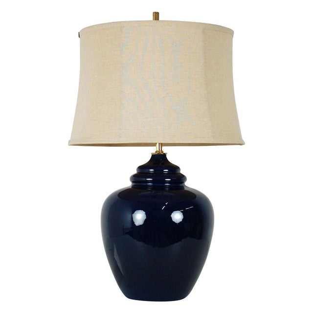 Large Vintage Navy Blue Ceramic Lamp & Shade Chairish