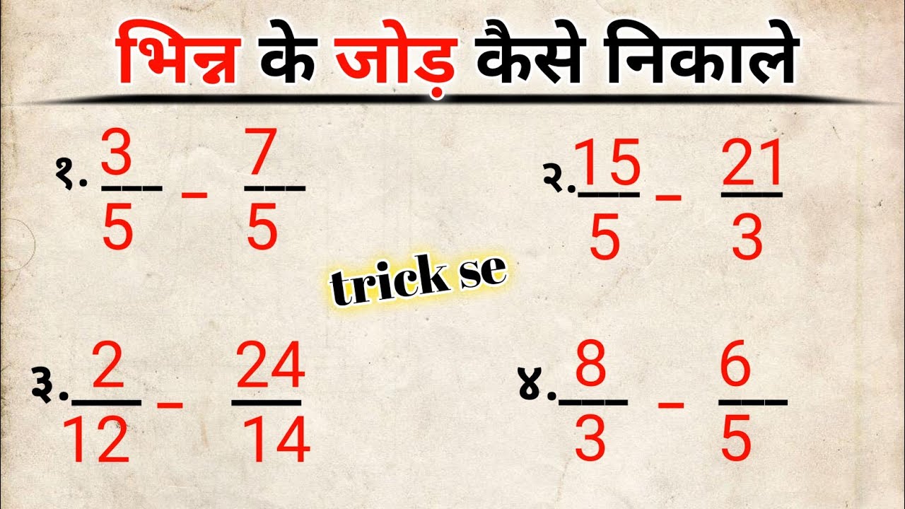 bhinn ke ghatav kese karenभिन्न कैसे निकालेHowTo Subtract Mixed