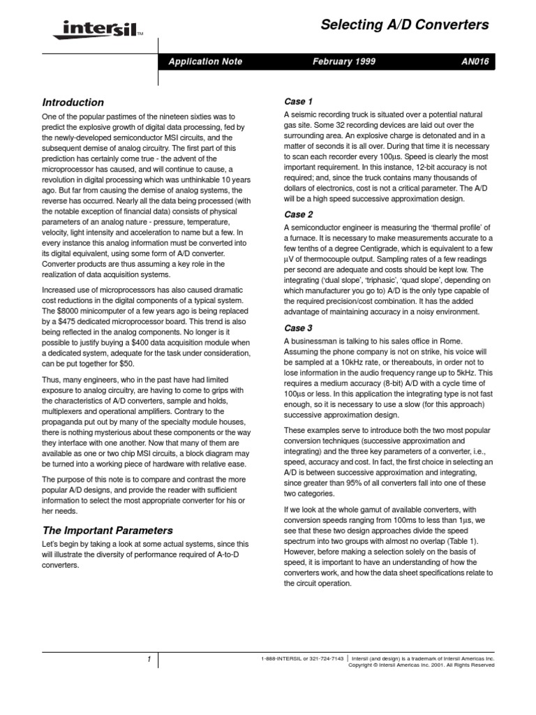 Selecting A/D Converters Application Note February 1999 AN016 PDF