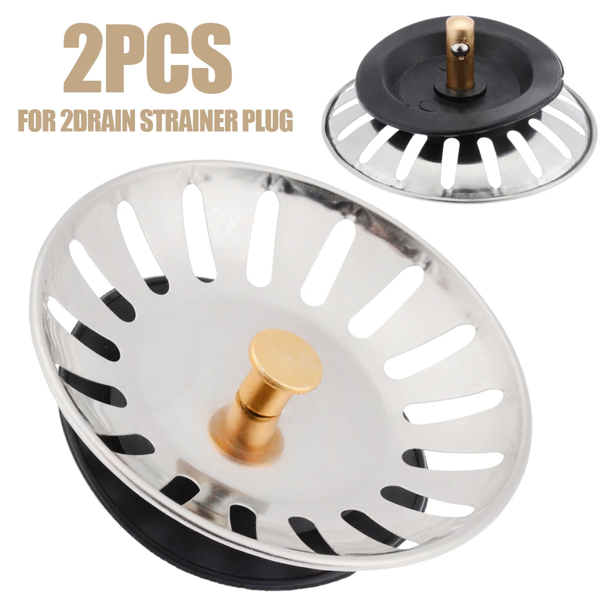 2Pcs Stainless Steel Drain Strainer Plug Home Waste Stopper Kitchen